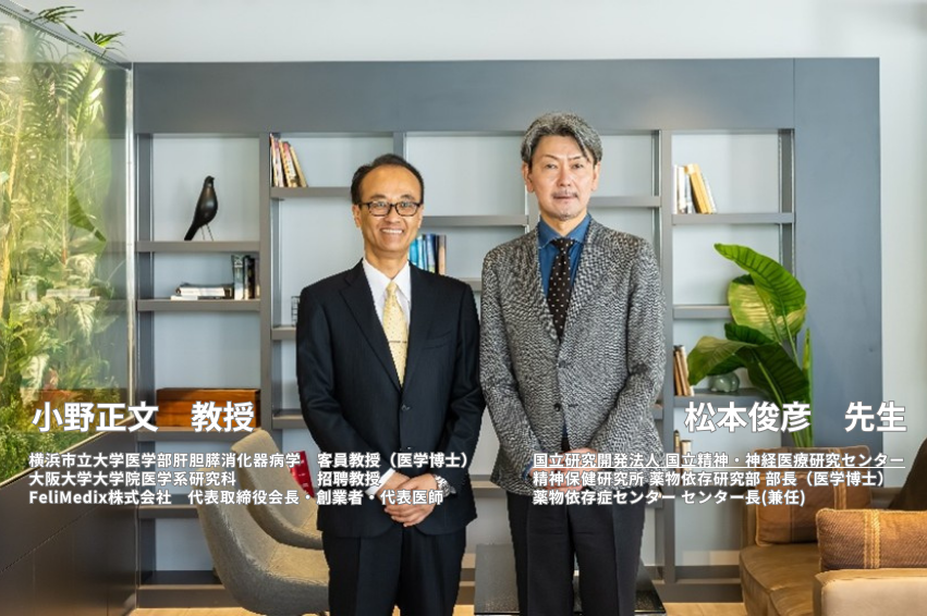 世界的レベルで活躍されている松本俊彦先生に、FeliMedix(フェリメディックス)株式会社の代表取締役会長で、横浜市立大学医学部肝胆膵消化器病学客員教授、大阪大学大学院医学系研究科招聘教授の小野正文先生が薬物依存症治療のトップ名医の診療の神髄と極意を伺った。
